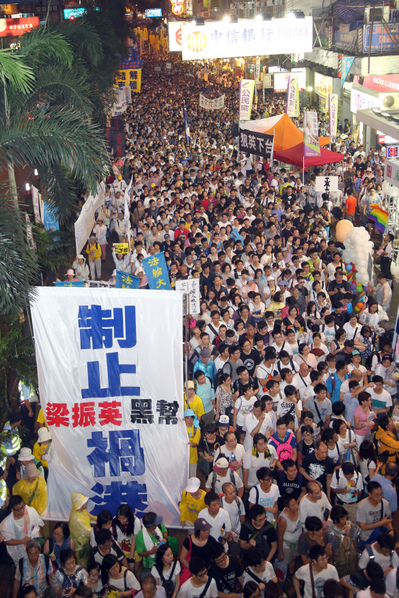 去年七一遊行有40萬人上街,矛頭同樣指向地下黨特首梁振英和背後的中共政權。民陣相信今年政治氣氛令民怨更大,加上今次六四集會的聲勢,預計人數會比往年多,因此初步向警方申請遊行人數10萬,較往年多一倍。