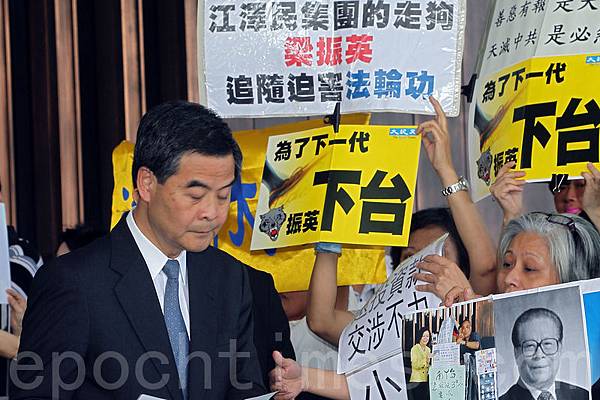 中共地下黨梁振英上任後一直充當江澤民集團的走狗,在香港攪局激化矛盾。(潘在殊/大紀元)