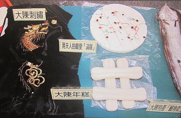 2004年11月23日,國民政府自大陳島全面撤軍後,居民在大陳新村落地生根,已經半世紀。台北縣社區營造年會展出永和市大陳居民保留的飲食、服飾,與蔣夫人最喜歡的浙江點心「清糕」。(鍾元翻攝/大紀元)