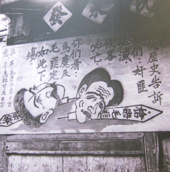 1955年2月8日,大陳街道家家戶戶牆壁上畫著各式反共漫畫及標語。(鍾元翻攝/大紀元)