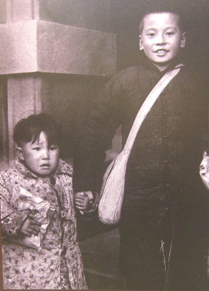 1955年2月9日,背著小小孩的小孩。(鍾元翻攝/大紀元)