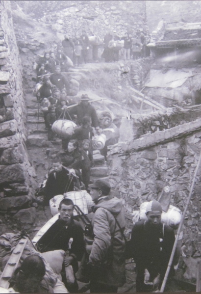 1955年2月8日,大陳居民扛著行李,抬著行動不便的家人,離開自己世代居住的家園,整個撤離行動井然有序,毫不慌亂。(鍾元翻攝/大紀元)