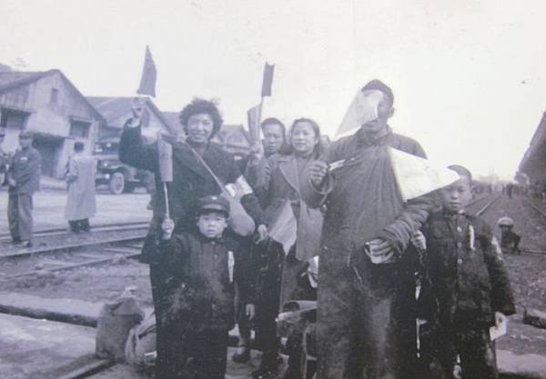 1955年2月9日,全家開心的揮舞著旗幟。(鍾元翻攝/大紀元)