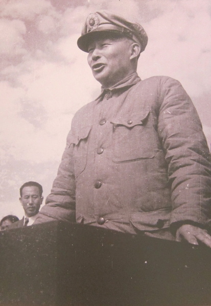 反共救國軍總指揮胡宗南將軍(當時化名秦東昌)對游擊隊訓話。(鍾元翻攝/大紀元)