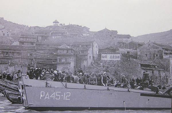 1955年2月8日,登陸小艇靠岸。(鍾元翻攝/大紀元)