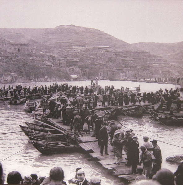 1955年2月8日,準備撤退的大陳居民,扶老攜幼,大包小包等待出發,他們臉上有依戀之情,也有欣慰之色。(鍾元翻攝/大紀元)