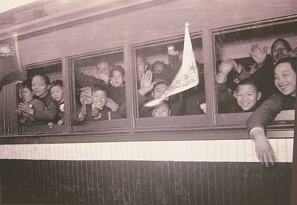 1955年2月13日,大陳義胞向歡送的人群揮手告別。(鍾元翻攝/大紀元)
