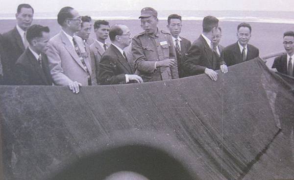 1956年2月8日,嚴家淦主委一行參觀蘇澳嶺腳漁港,這地方是大陳義胞的漁業作業區。(鍾元翻攝/大紀元)