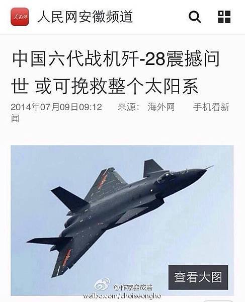 中共自詡它們可挽救太陽系的"懺"(殲)-28,狂妄自大溢於言表。