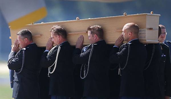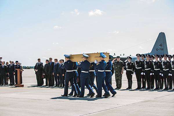 7月23日,載有首批遇難者遺體的兩架軍用運輸機抵達荷蘭,荷蘭政府以莊嚴、高規格的儀式迎接遇難者。(Brendan Hoffman/Getty Images)