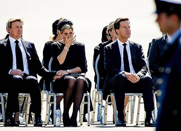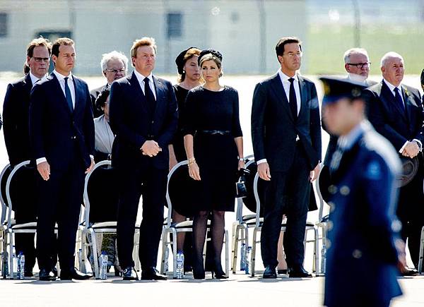 荷蘭國王威廉‧亞歷山大(Willem-Alexander)和馬克西瑪 (Maxima)王后、荷蘭總理呂特(Mark Rutte)和副總理阿斯捨爾(Lodewijk Asscher)等親自迎接遇難者遺體的抵達。(ROBIN VAN LONKHUIJSEN/AFP/Getty Images)