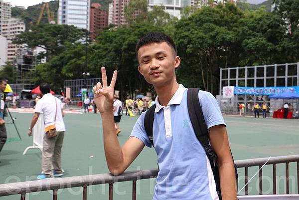 內地大專學生廖先生,今年16歲。他說,以前已知道七一遊行活動,但一直沒有空,直到今年暑假來港,他決定參與,並說,連香港爭取民主也感到困難,所以覺得要出來支持,希望為香港民主出一份力。