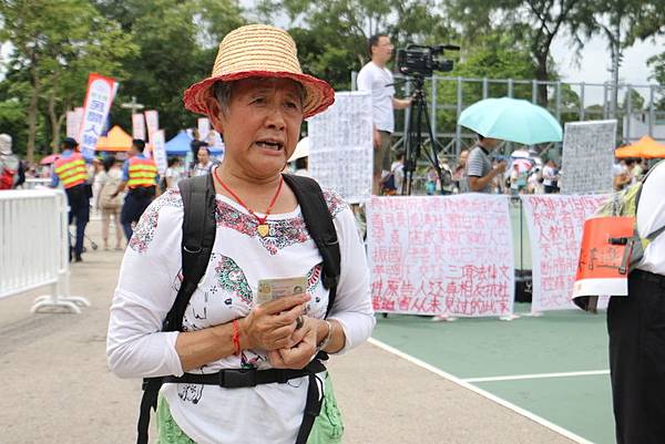 來自北京的訪民張秀華和李立榮,早上11點就來到維多利亞公園,準備參加下午的七一大遊行。她們說,還有大批訪民準備來,但因為臨近七一,近日都被當局列入黑名單而被攔阻,有的又再次被捕。他們兩人因為提早到27日就來到香港,所以幸運地能夠參加七一遊行。