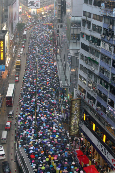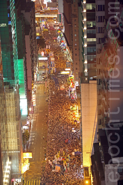 2003年7月1日,50萬人首次「七·一」上街就成功制止中共江澤民集團強加於香港的23條立法,寫下港人抗共拒共歷史的光輝一頁。11年後,香港成為中共高層搏擊的風暴中心,江澤民集團拋出香港白皮書衝擊「一國兩制」,意圖翻炒23條,加上江派特首梁振英上任來一再挑起社會矛盾,最終激起港人空前強大的抗共怒潮。
