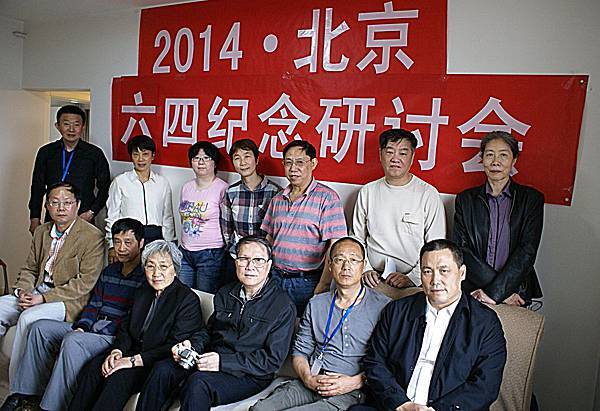 ●北京學者和六四難屬5 月3 日在北京電影學院教授郝建家中舉行六四25 週年研討會,要求調查六四真相。其中五人浦志強(前排右1)、徐友漁(前排左2)、郝建(後排左1)、劉荻(後排左3)和胡石根(後排右3)因此被中共當局以尋釁滋事的罪名刑拘。