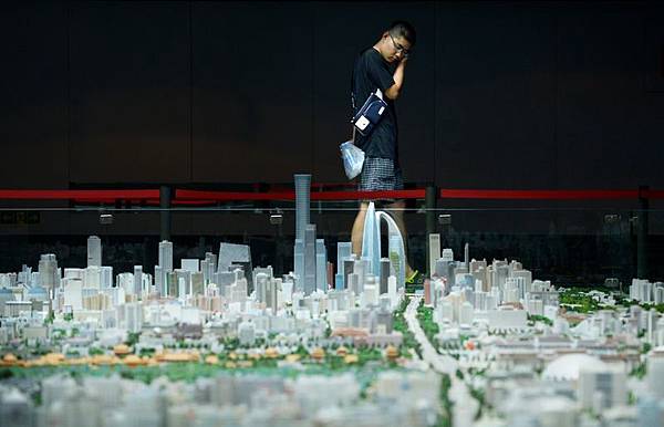 圖為2014年7月16日,一位參觀者在北京展覽中心瀏覽北京城市發展微縮模型。(Getty Images)