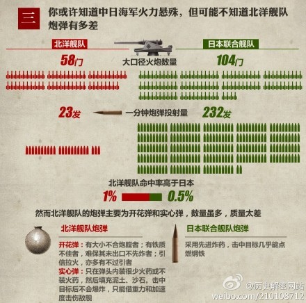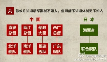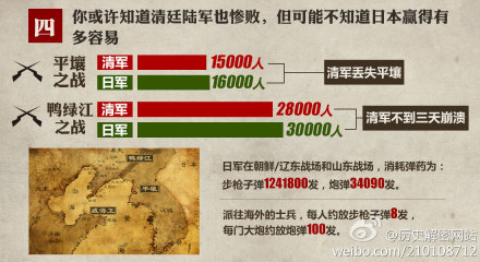 有網友將甲午戰爭總結成7張圖片,展示當年兩國的一些事實情況。摘錄如下: