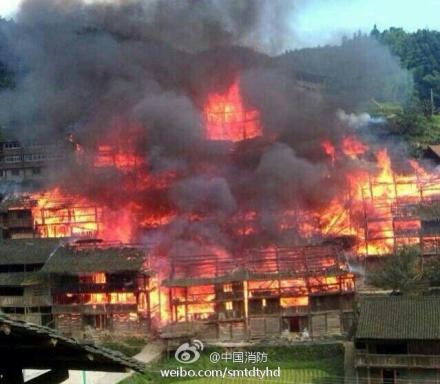7月6日15時許,貴州省黔東南苗族侗族自治州黎平縣一侗族村寨發生火災。從網絡圖片看,火災現場一片火海,濃煙滾滾。初步統計,火災共燒燬房屋28棟,受災28戶157人。相關經濟損失正在核實統計中。