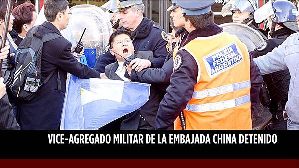 習近平7月18日抵達阿根廷首都布宜諾斯艾利斯進行4天的訪問。在習到訪之處,中共駐當地使館雇兇阻擋法輪功學員向習近平請願。阿根廷警方逮捕了現場組織衝擊法輪功學員的一名中領館官員。