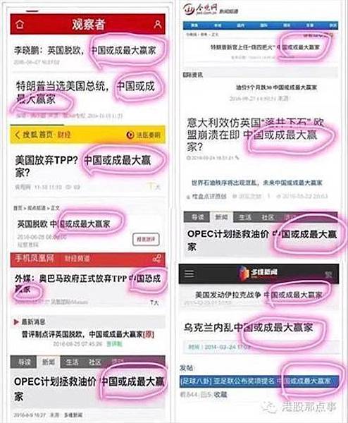 無論國際情勢多麼錯綜複雜,中共官媒總能得出一致的結論──「中國或成最大贏家」,也讓這句話成為網民諷刺中共愚民宣傳的流行語。(網路圖片)