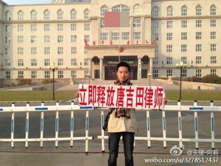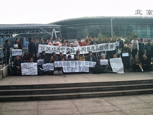 目前,數十名律師和民眾前往當地緊急聲援,要求當局立即釋放唐吉田、楊開成。19日,董前勇等律師向雞西市公安局交涉時,公安局長叫囂:「看全國能來多少律師!」(網絡圖片)