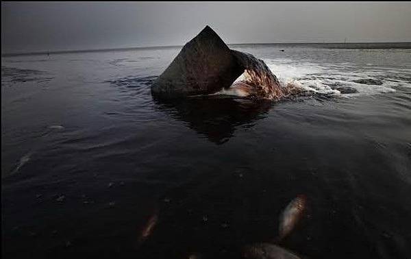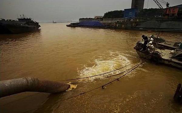 鎮江市鈦粉廠每天大量的化工污水排放長江,下游不到1000米處是丹陽市自來水取水處。2009年6月10日 (網絡圖片)