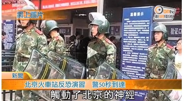 4月30日晚新疆烏魯木齊火車站發生爆炸案,令當局慌恐不安。5月1日晚,北京火車站舉行「反恐」演習,民眾以為發生了恐怖襲擊,驚恐狂奔。今年3月昆明血案後,大陸一直被恐怖氣氛瀰漫。
