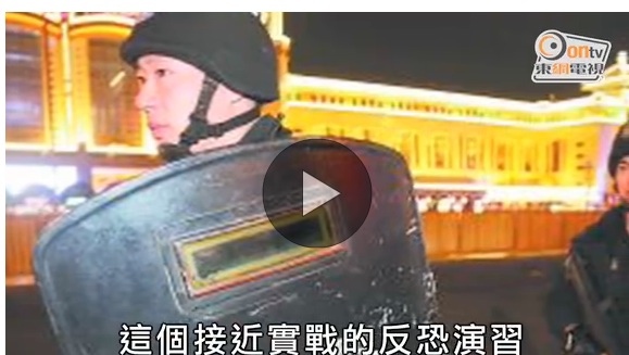 圖為北京火車站「反恐」演習現場。(網絡截圖)