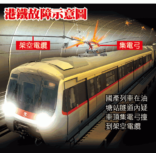 將軍澳綫高壓電纜鬆脫,導致列車跳掣,將軍澳綫全線停駛