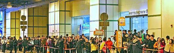 ■受港鐵故障影響,大批乘客在調景嶺站外排長龍,等候轉乘接駁巴士。司徒世華攝