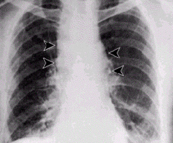肺炭疽病人X光攝影,可見局部腔室擴大。(維基百科)
