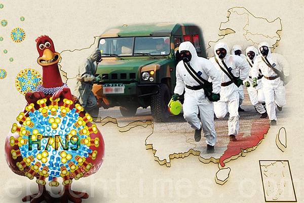 中國大陸H7N9疫情持續擴散,北京市知情民眾向大紀元披露,現在禽流感疫情嚴重甚至超過SARS,而軍隊已作好準備,一旦疫情失控會隨時介入。(大紀元合成圖片)