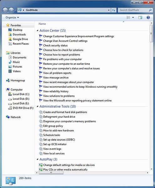 步驟4:雙點 Icon 啟動 Windows 7 的 Godmode 如下圖