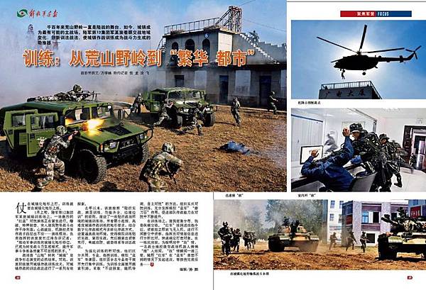 就在1月24日同一天,新華網首頁罕見推出了一條《解放軍巷戰對抗首次曝光 主戰坦克群「進城」》新聞。該報導引述該畫報的話說:「千百年來荒山野嶺一直是陸戰的舞台,如今,城鎮成為最有可能的主戰場」。圖文介紹,這是陸軍第12集團軍某旅的一場著眼交戰地域變化,進行城鎮作戰訓練。