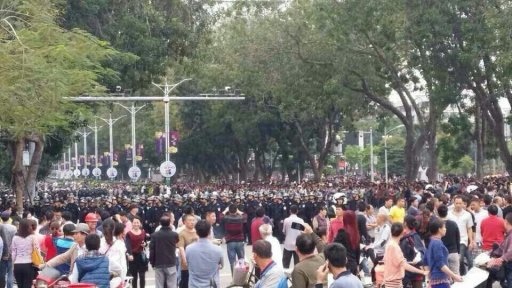 台灣「反黑箱服貿」 學生持續佔立法院議場,5日,學生召開三場「人民議會」 ,審議兩岸監督條例,他們認為國安、人權及民主,應為談兩岸協議的首要考量。反《服貿》學生下午有超過500人,至國民黨立委吳育昇淡水選區掃街。