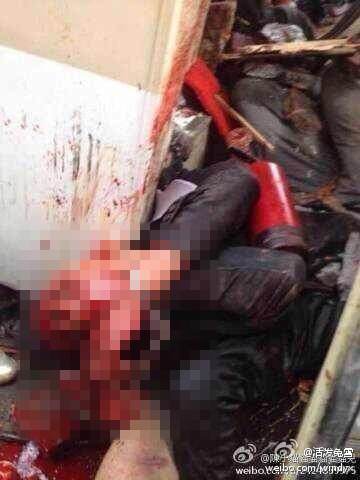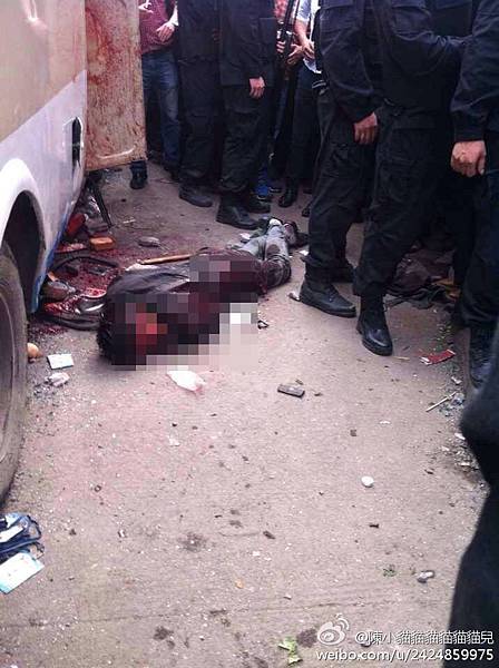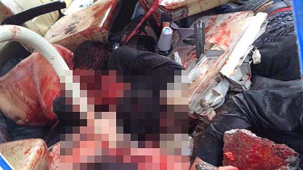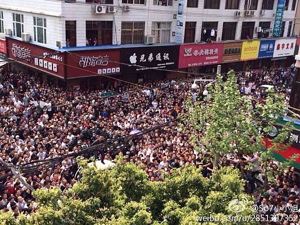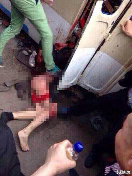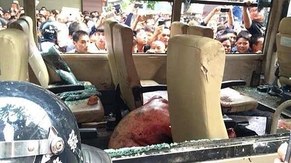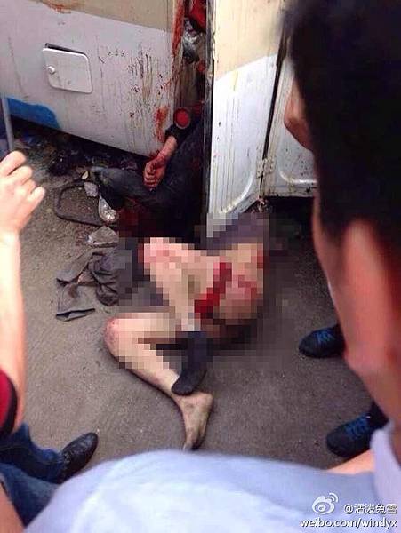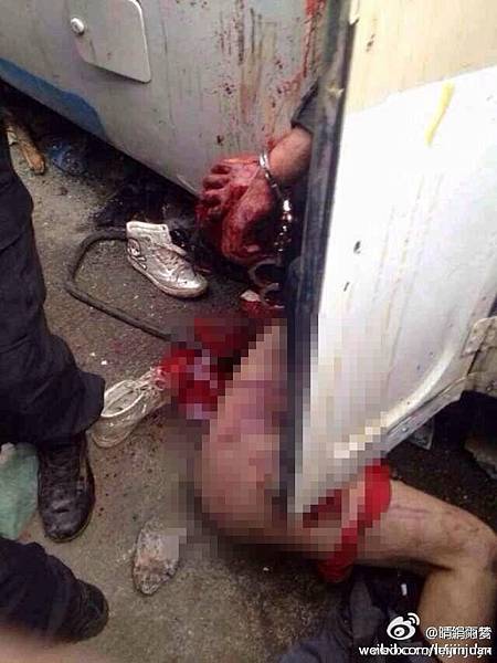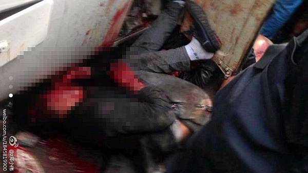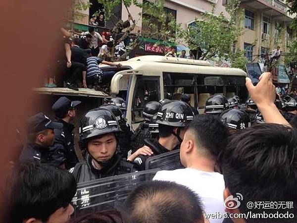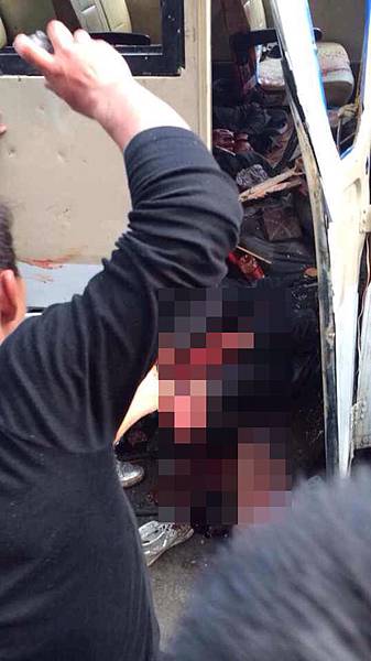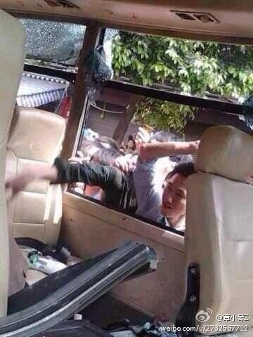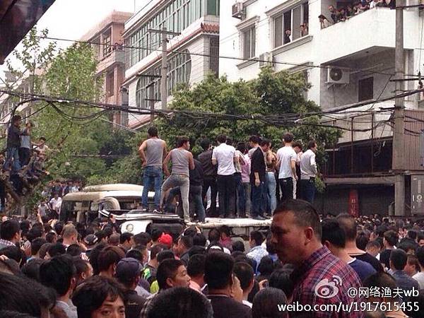 中午後,現場有上千民眾包圍城管的車輛,城管的暴行激怒了圍觀的民眾,5名打人城管被圍毆,被用石頭砸打,場景血腥恐怖。(網絡圖片)
