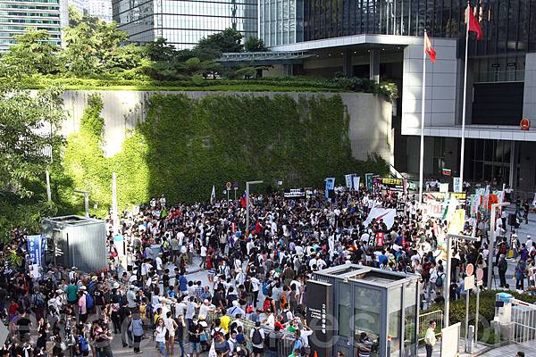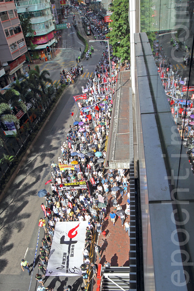 遊行隊伍沿著港島區鬧市緩緩前進,高昂的口號聲以及平反六四的標語,感動和震撼沿途觀看的大陸遊客。