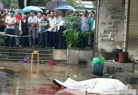 網民微博稱,兩人是因五元錢一碗拉麵發生鬥毆,一人被割頸,開胸破肚,心臟被掏出,犯罪嫌疑人行凶後還在被害人身上一通猛咬。從網民上傳網絡的圖片看,死者倒在血泊中,地面上到處是鮮血。