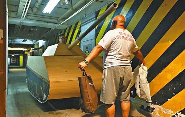 5月天炎熱昏暗的工廈走廊,「阿牛」曾健成與五、六個義工,用三輪單車、木板和鐵支架,花費3,000元造出殺人政權的終極象徵。坦克車模型長八呎、闊約四呎,炮身長逾六呎,「場地所限,要入ga,如果唔係可以做更大架」。