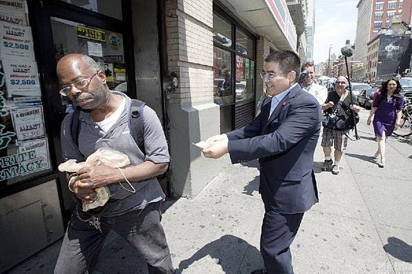 陳光標紐約街頭派錢 遭流浪漢給他冷屁股貼瞼